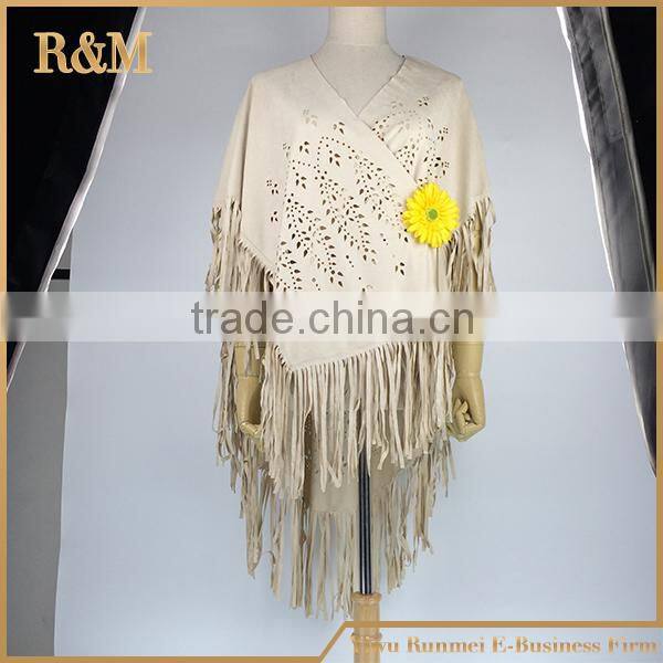 Custom Design Suede Shawls and Ponchos With Fringe Leather Scarves