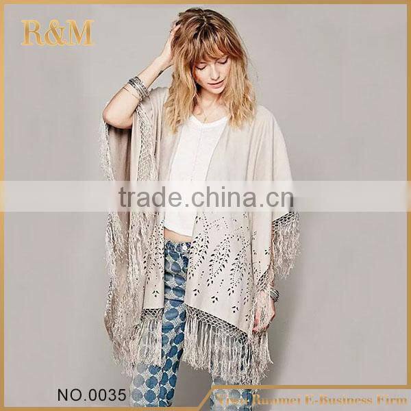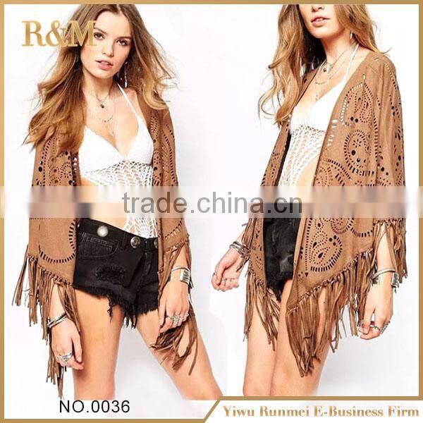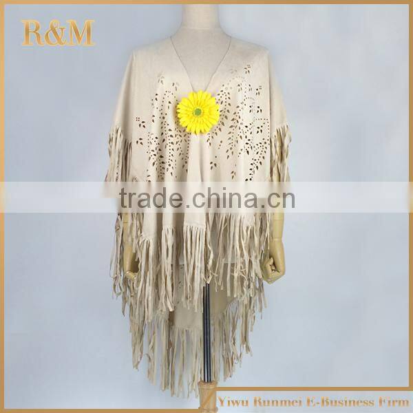 Best Selling New Fashion Tassels Suede Shawl Hollow Out Shwal