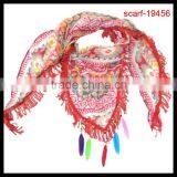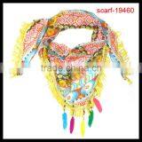 2014 Lady Colorfull Triangle Fringe Scarf With Feather Tassel