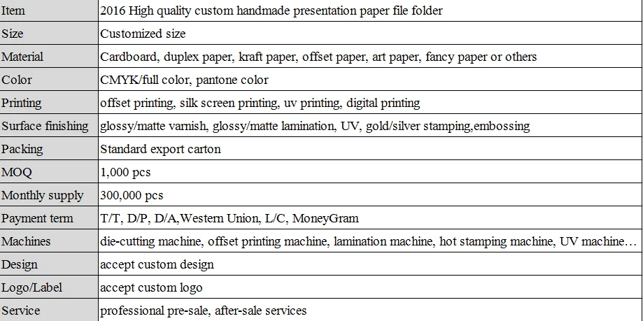 2016 High quality custom handmade presentation paper file folder