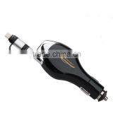 5V 2A / 4.8A Retractable Car Charger for Iphone 5 and Android With 2 In1 Cable