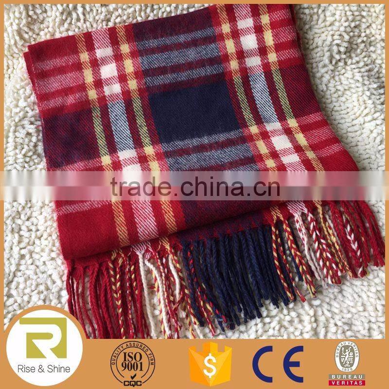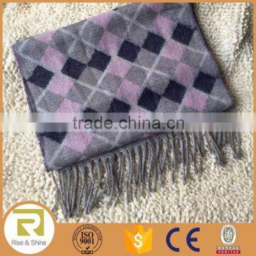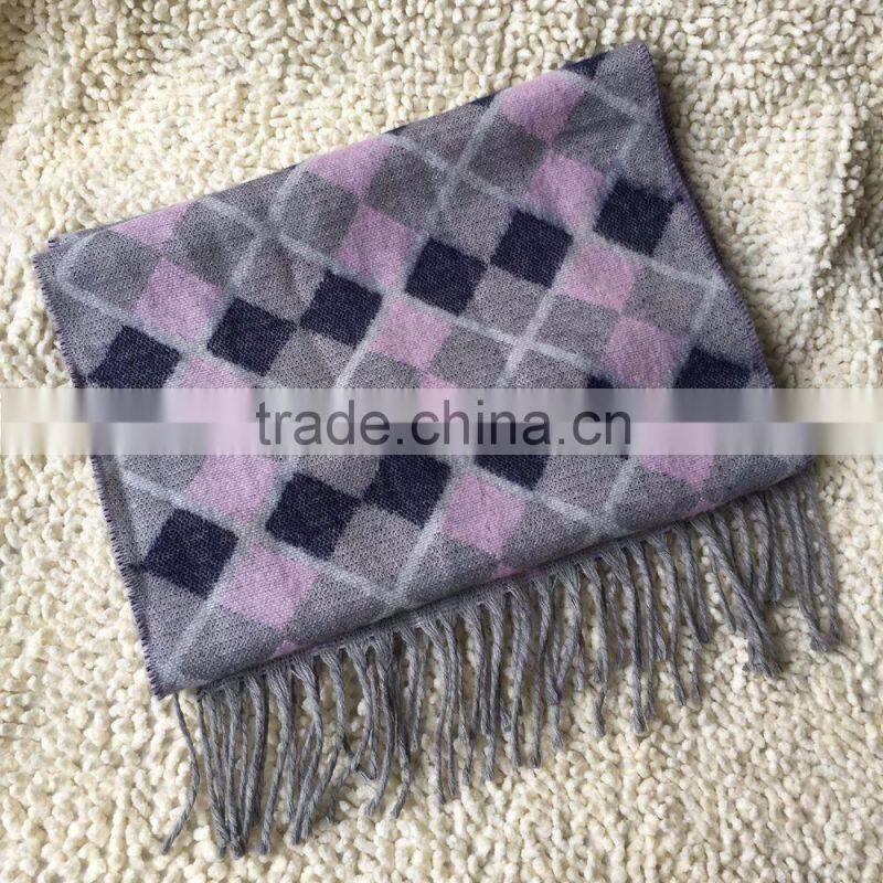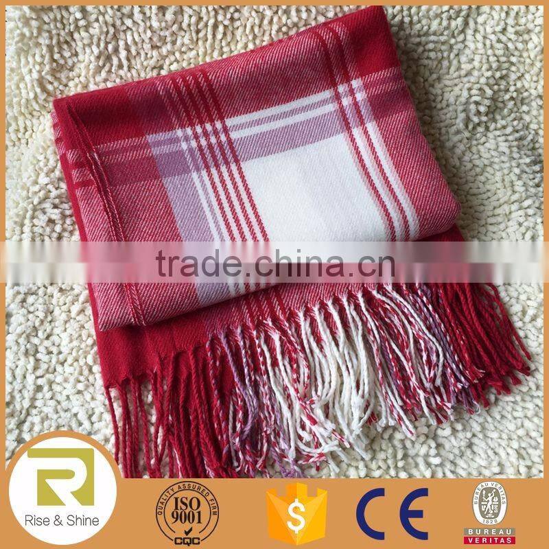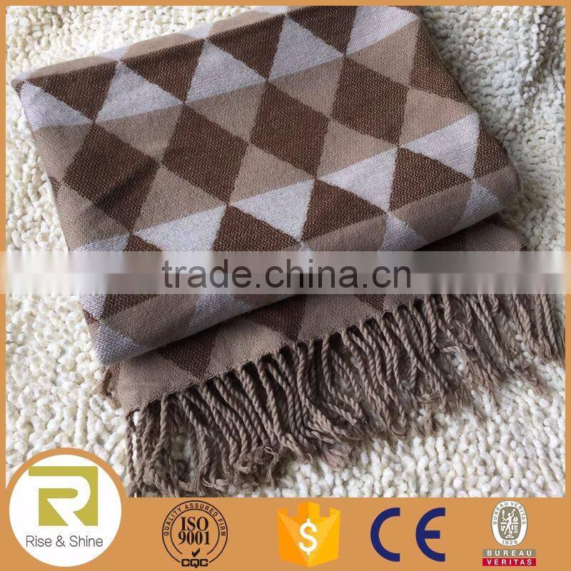 Wholesale 100% Acrylic Woven Grid Diamond Jacquard Pashmina Fringed Shawl Scarf