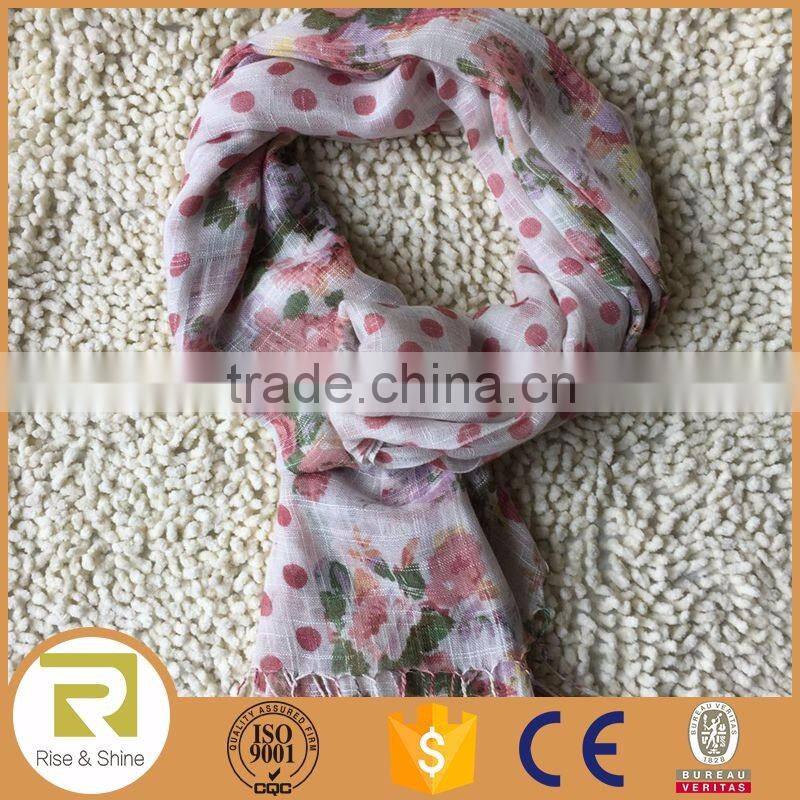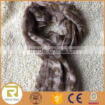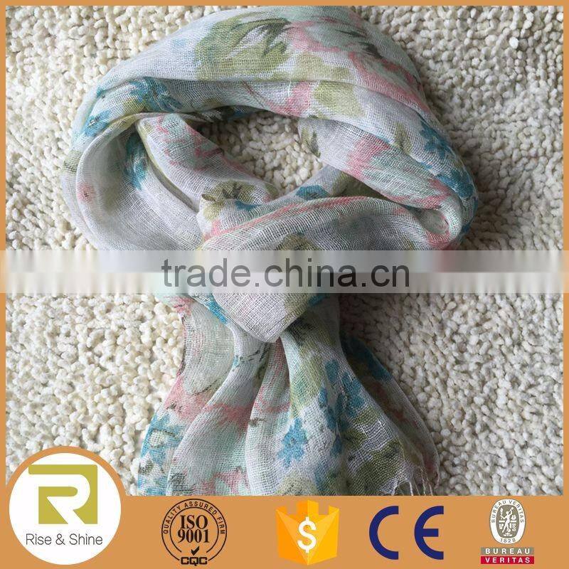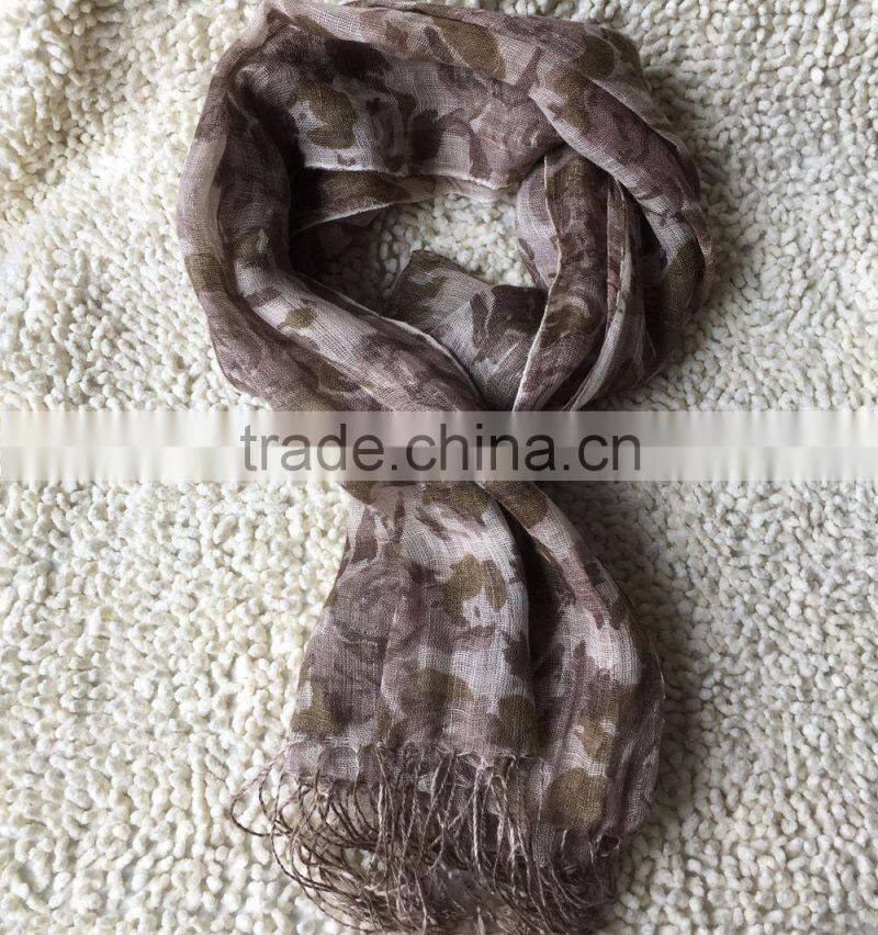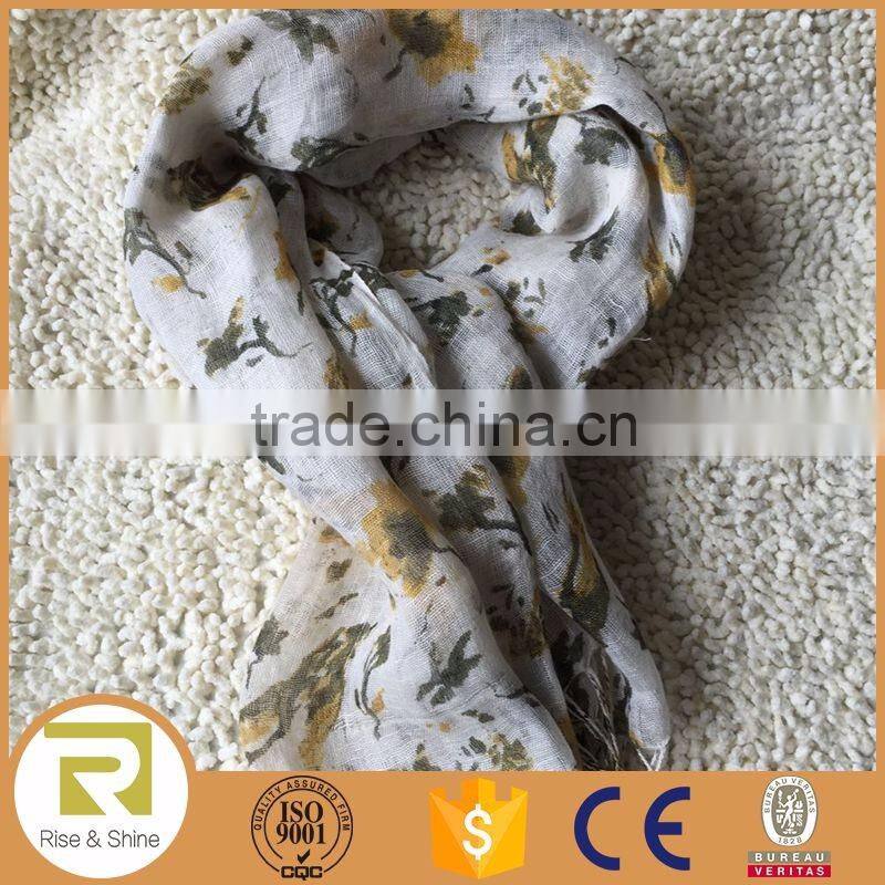Wholesale 100% Linen Coffee Flower Printed Fringed Shawl Scarf