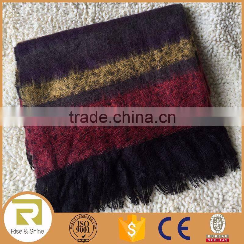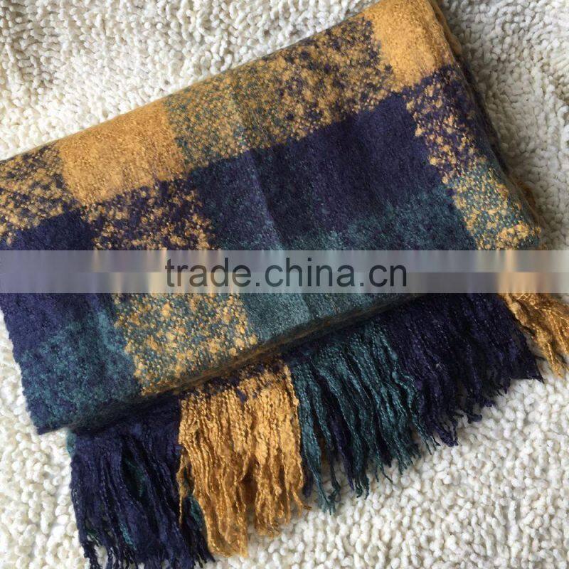 Wholesale 100% Acrylic Woven Boucle Yarn Yellow Plaid Jacquard Brushed Fringed Shawl Scarf
