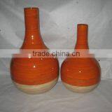 Vase Bamboo Set/2 Orange And Natural Color