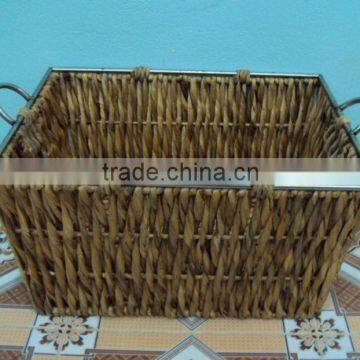 Rect Water Hyacinth Basket With Strong Metal Handles