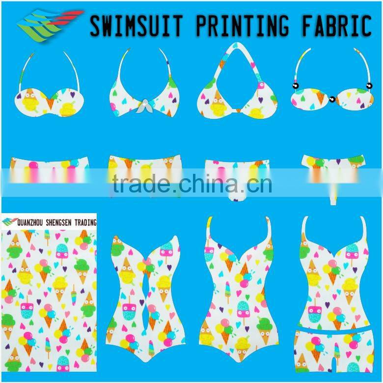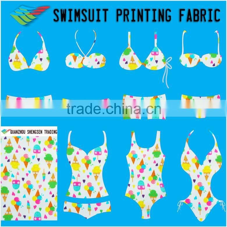 cartoon icecream printing nylon spandex 4 way stretch a bathing suit material