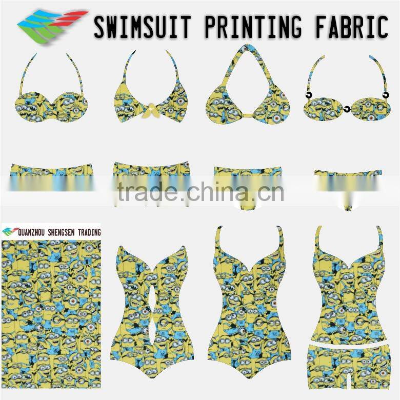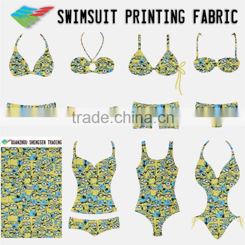 yellow figure printed beachwear fabric for kids