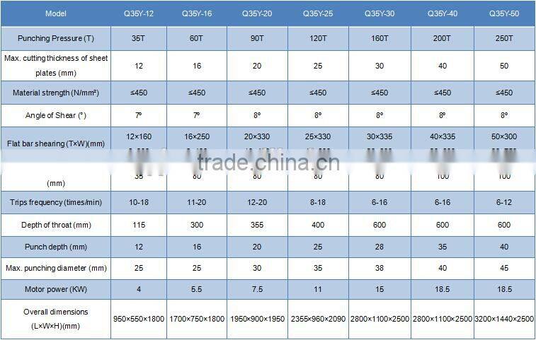 Our factory produce all models of ironworker,is just one part of the bottom of the parameters,if you need ironworker at the bottom can not fing,please contact us.