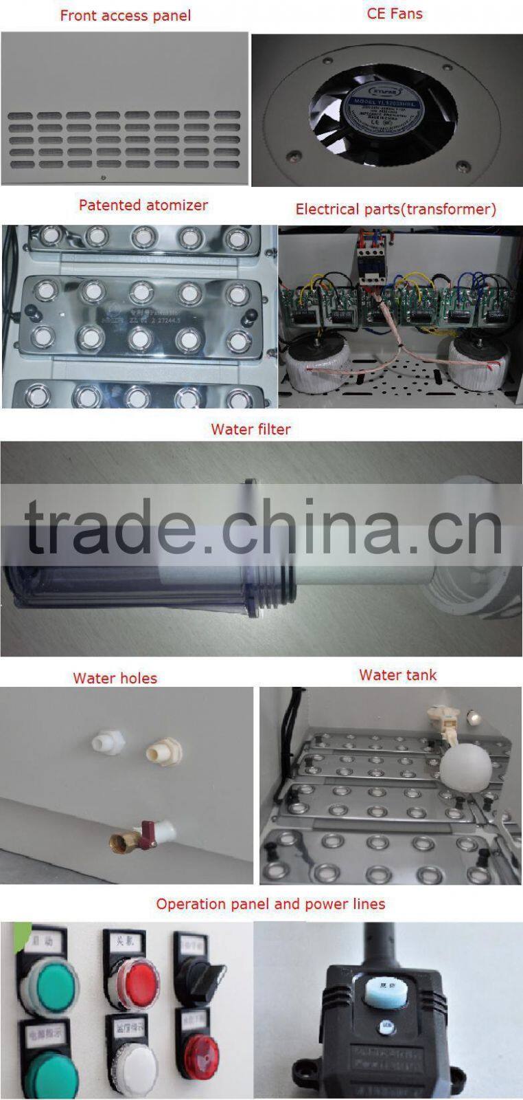 ion and low failure rate and easy maintenance, the output fog grain diameter only be 1-10 μ. The stainless steel body, powder coated, beautiful appearance, standard filling water mouth, switch and