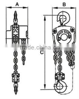 The HSZ-V Series Chain Block is a portable lifting device easily operated by hand. It is suitable for use in factories, mines, farms, construction sites, agricultural production, and in wharfs, docks and storages for fixing machines, lifting cargos, and loading and unloading goods. It is especially advantageous for lifting work in the open air and places where no power supply is available. | |