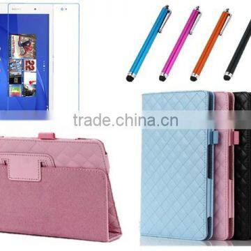 Plaid Grid Soft Skin Folio Flip Stand Leather Case For SONY Xperia Z3 Tablet Compact 8"