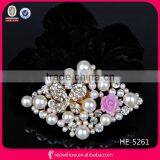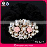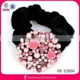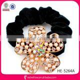 2014 Spring Hot Sale Diamante Pearl Flower Hair Elastic Tie With Velvet Bands