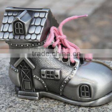 Zinc Alloy Shoe Shape Money Bank,metal House Shape Piggy Bank