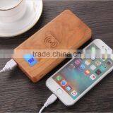 Wood 12000mAh Power Bank Battery Qi Wireless Charging Pad For Samsung IPhone Dual USB Wireless Charger