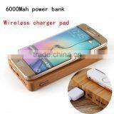 Bamboo 2 in 1 6000Mah Battery Power Bank +Qi Wireless Charging Mat Pad Charger Pad for Samsung Iphone ETC