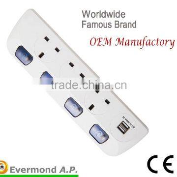 4-6 Ways15A 220-240V UK / BS Extension Socket With USB