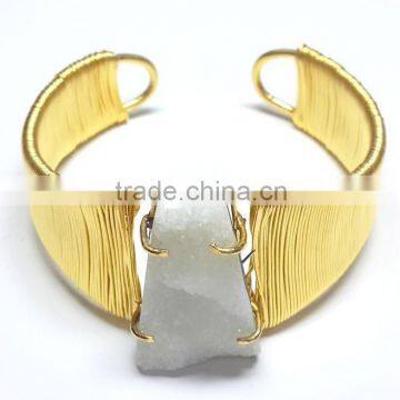 Coated White Druzy Taper Bracelet, Vermeil 925 Solid Sterling Silver Bracelet, Designer Prong Cuff Bracelet