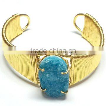 Blue Coloured Oval Druzy 925 Vermeil Silver Bracelet, Designer Druzy Bracelet, 925 Sterling Silver Designer Jewelry