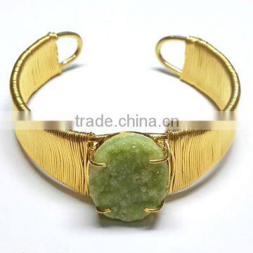 Coloured Green Druzy 925 Vermeil Silver Bracelet, Designer Druzy Semi Precious Bracelet, 925 Sterling Silver Designer Jewelry