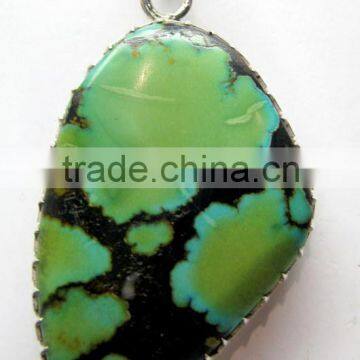 Turquoise Tumble Cabochon Pendant , 925 Solid Sterling Silver Pendant, Designer Silver Prong Pendant