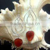 Carnelian Oval Natural Gemstone Earrings, 925 Solid Sterling Silver Earrings, Designer Cabochon Dangle Earrings