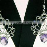 Amethyst Oval Jaali Natural Gemstones Earrings, 925 Solid Sterling Silver Earrings, Designer Facet Gemstone Dangle Earrings