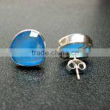 Blue Chalcedony Oval Facet Cabochon Stud Earrings, 925 Solid Sterling Silver Earrings, Designer Stud Earrings