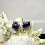 Amethyst Round Bezel Cabochon Stud Earrings, 925 Solid Sterling Silver Earrings, Designer Stud Earrings