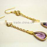 Amethyst & Citrine Pear & Round Facet 925 Sterling Silver Earrings, Designer Gemstone Earrings, Fashionable Bezel Earrings