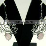 Rose Quartz Oval Jaali Natural Gemstones Earrings, 925 Solid Sterling Silver Earrings, Designer Facet Gemstone Dangle Earrings
