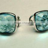 Blue Topaz Hydro Cushion Facet Stud Earrings, 925 Solid Sterling Silver Earrings, Designer Stud Earrings