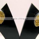 Coated Titanium Druzy Pear Gemstone Stud Earrings, 925 Solid Sterling Silver Earrings, Designer Gold Earrings