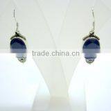 Lapis Lazuli Oval Natural Gemstones Earrings, 925 Solid Sterling Silver Earrings, Designer Facet Gemstone Dangle Earrings