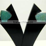 Coated Titanium Black Druzy Oval Stud Gemstone Earrings, 925 Sterling Silver Earrings, Designer Blue Stud Earrings