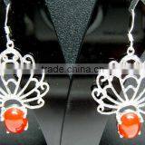 Carnelian Oval Jaali Natural Gemstones Earrings, 925 Solid Sterling Silver Earrings, Designer Facet Gemstone Dangle Earrings