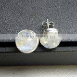 Rainbow Moonstone Round Cabochon Stud Earrings, 925 Solid Sterling Silver Earrings, Natural Gemsone Stud Earrings
