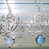 Rainbow Moonstone Oval Natural Gemstones Earrings, 925 Solid Sterling Silver Earrings, Designer Cabochon Dangle Earrings