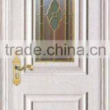 White Painted Arc Shape 2 Panel MDF Raised Molding Doors With Art Glass