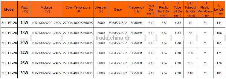 3U Wholesale CFL Bulbs CFL Lamp With SASO ET-28 |