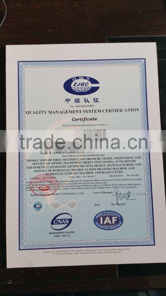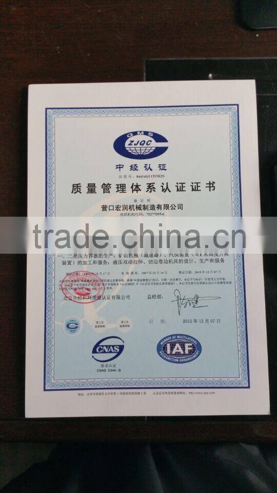 Our company has obtained the manufacturing license for first category and second category of pressure vessel equipment, and the license is issued by General Administration of National Quality Supervision. We also obtained the quality management system certification of ISO9001-2000. Our company mainly produces various vessel equipment, CNC hydraulic double-action drawing machine, and main processing accessories of export equipment, Yingkou hongrun company insists on customer-oriented, precision-concentrated production, and the quality policy of constant progress on technology, to dedicate to providing clients with our best quality products and services.