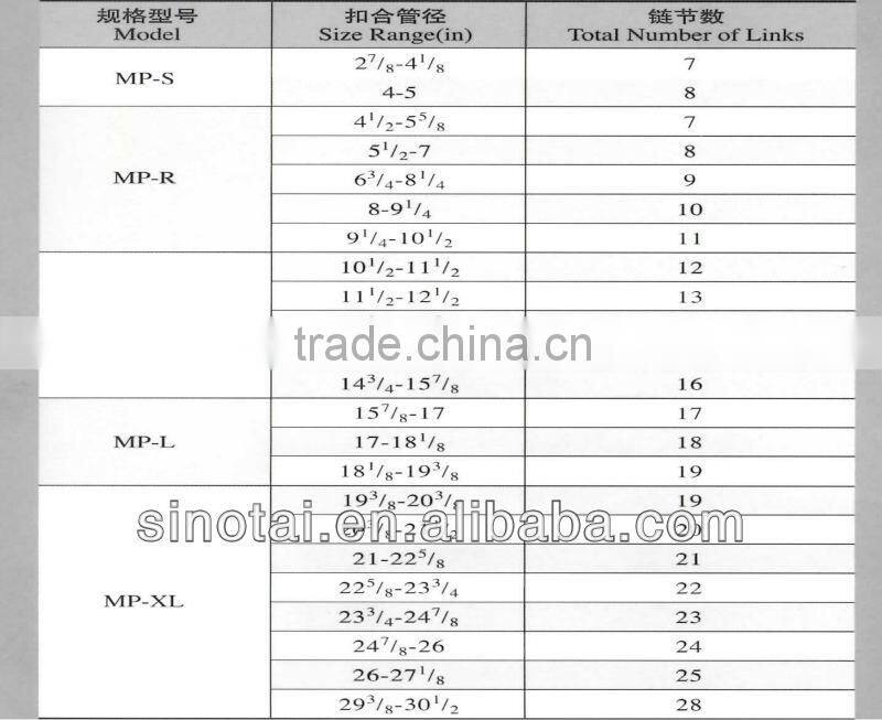 They could adjust pipes of different sizes by changing the quantity of chain links. They are designed and manufactured according to API Spec 7k Specification for drilling and well servicing equipment.