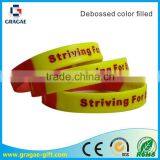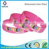 Direct Manufacturer Debossed Color Filled Silicone Bracelets