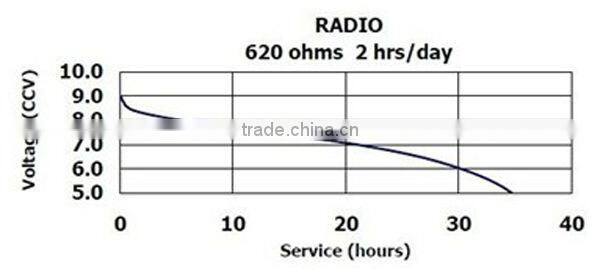 The 9v dry battery always use in alarm, remote control toys, wireless doorbell, wireless headsets, multimeter, etc