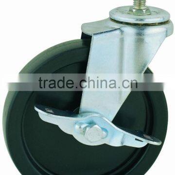 13 Double Ball Raceway Screw Stem Swivel Black PP Caster with Side Brake