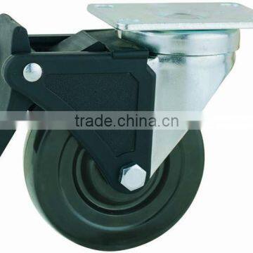 22 Series Double Ball Raceway Structure Top Plate Swivel Black Rubber Caster With Nylon Top Lock Brake