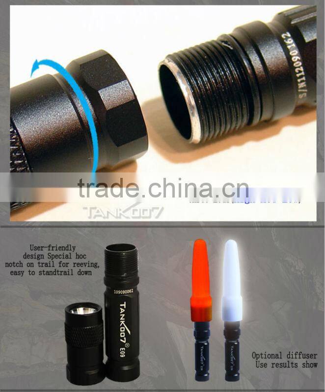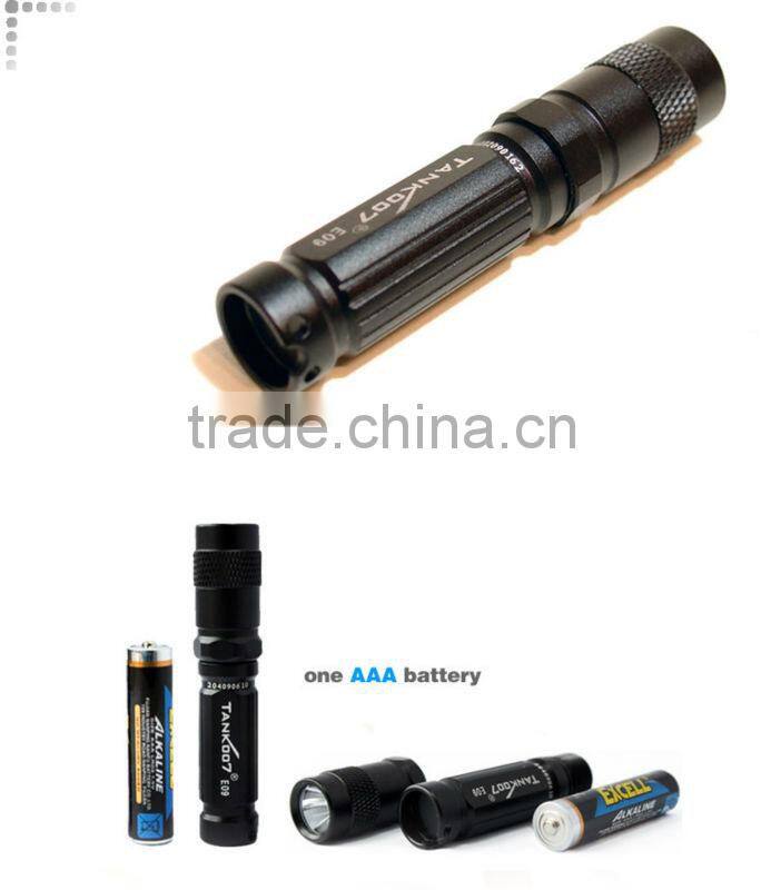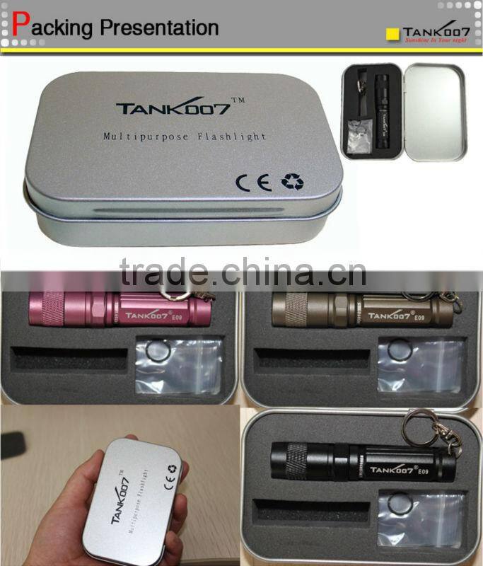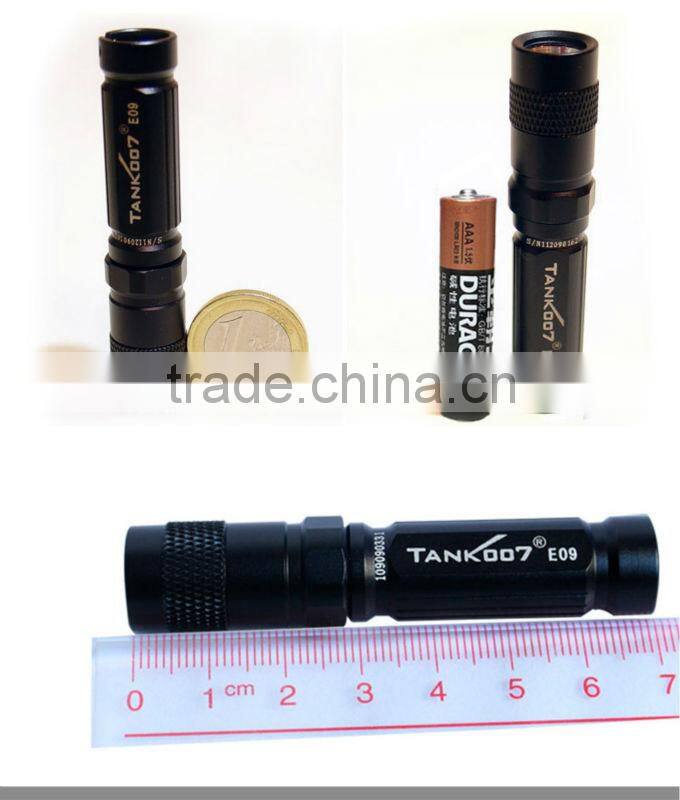 Waterproof Mini Led Flashlight TANK007 E09,I2040 Led Torch Taigeer Power Source