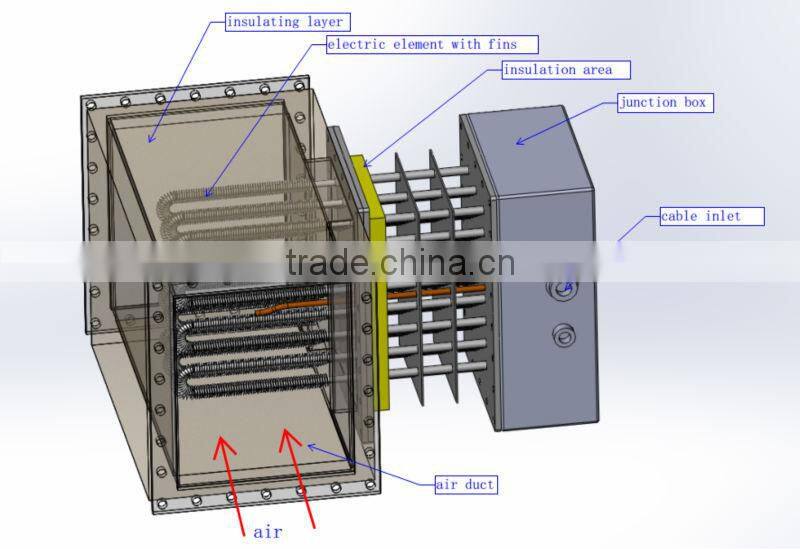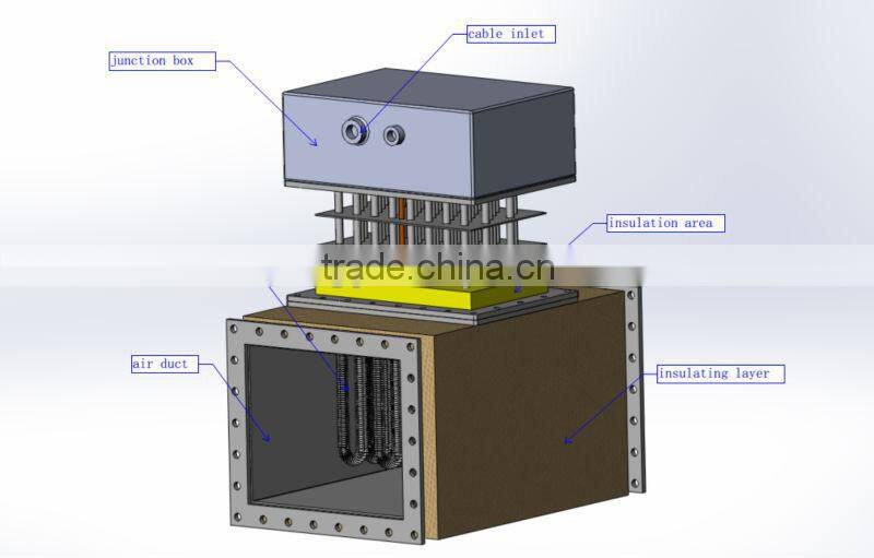 Finned type and smooth type can be selected by different requirements. The air duct electric heater mainly used in industrial air channels, air-conditioning air channels and other air drying industries.
