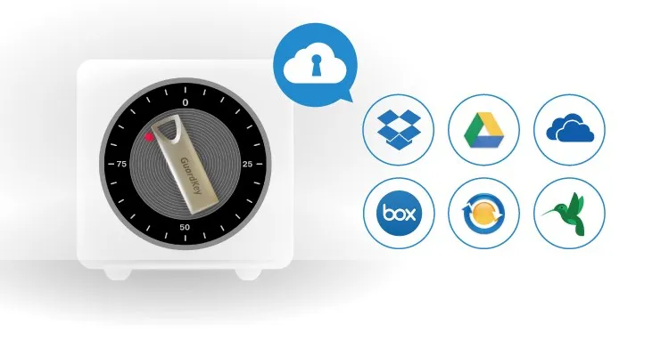 Installed Cloud services such as Google Drive, DropBox, OneDrive, and more are automatically detected and can be instantly used with GuardKey.