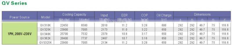 2. Performance datums are referred to ASHARE-T condition, for H code at 1 ph, 208-230v/60hz.